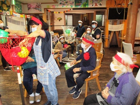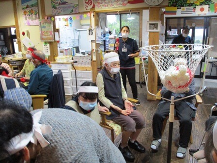 ここ数年、コロナに翻弄されっぱなしで出来なかった『さくら野運動会』!今年ようやく開催できました。利用者様を2チームに分けて、テーブルを全て除けて行なった紅白玉いれ!その後はジャンケン勝ち抜き戦。団扇に描いたグーチョキパーを出し合い、大盛り上がり!大盛況のうちに終わりを迎えました。