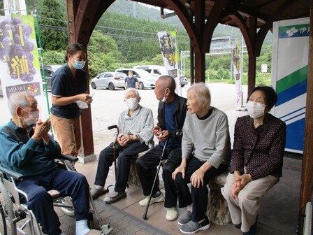 細入村道の駅『林林』へドライブに行きました。おやつの大判焼きを持参し、『林林』のベンチに皆で座っていただきました。『林林』は団子や五平餅を売っており、また巨峰も出ていていつもと変わった景色を見つつドライブして参りました。