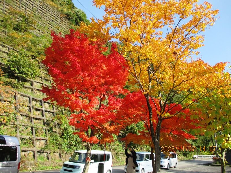 ぐずついた天気が続き、やっと晴れ間が見え出したこの日の午後、八尾町桐谷の久婦須川ダム周辺へドライブに行きました。全体的な紅葉は今ひとつでしたが、真赤に紅葉している木もちらほらあり、山の空気も澄んでいてとても気持ちの良いドライブとなりました。