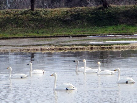 良いお天気に白鳥たちも飛び立っていきそうな午前、施設近くの神通川に白鳥がいるという事を聞き、ドライブに利用者皆様と行ってまいりました。皆様と車の中からそっと白鳥たちを見守りました。